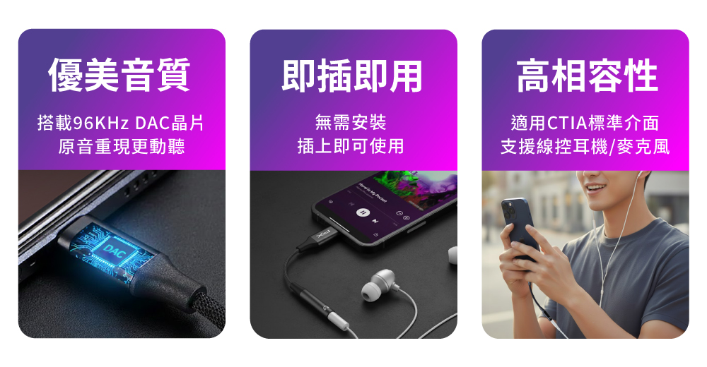 搭載96KHz高解析DAC晶片,保留更多音樂細節與動態層次,支援耳機線控與通話,搭配高質感用料與強化結構,無論聽音樂、追劇,聲音都更清晰有臨場感。