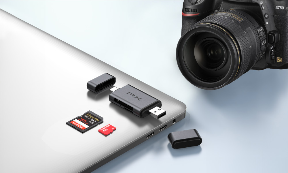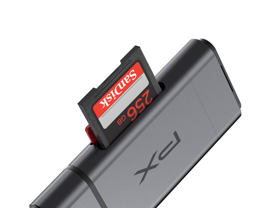 同時支援SD與microSD(TF)卡,可同時讀取與資料交換,一次完成更有效率。